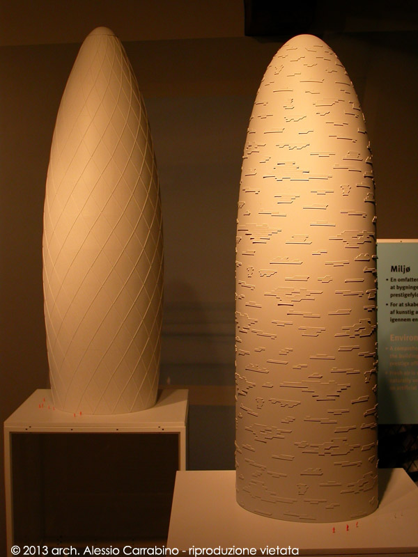A sinistra 30 St Mary Axe “The Gherkin” (h.180 m), Foster and Patners. A destra Torre Agbar (h. 144 m), Jean Nouvel.
