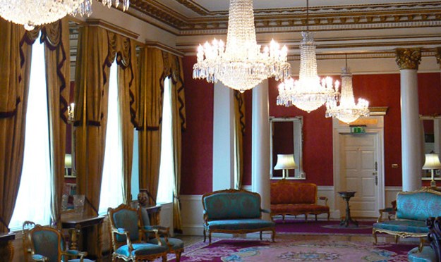 Le sale più rappresentative sono quella del Trono e la St Patrick Hall. Quest’ultima presenta soffitti affrescati con riferimenti ai rapporti tra Inghilterra e Irlanda ed è decorata con i vessilli dei cavalieri di San Patrizio. Mi hanno particolarmente colpito i pregiati lampadari in cristallo.