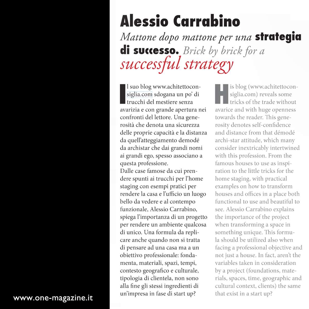 distribuzione o la memorizzazione di una parte o di tutto il contenuto delle suddette pagine, sotto qualsiasi forma e senza la preventiva autorizzazione scritta di arch. Alessio Carrabino, non è consentita.