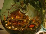 Presepe realizzato all’interno di una damigiana rotta. Sono stati utilizzati materiali naturali quali il muschio del giardino, i sassolini raccolti d’estate a Lerici ed i rametti portati dal fiume Magra sulla spiaggia di Marinella.