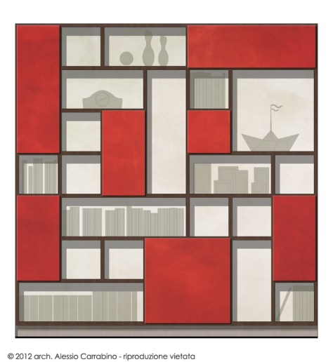Il risultato finale permette di riporre sulla libreria molteplici oggetti, dai libri alle cornici per fotografie, dall’oggetto di design al vaso con i fiori.
